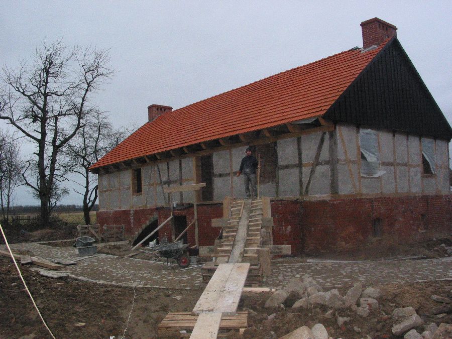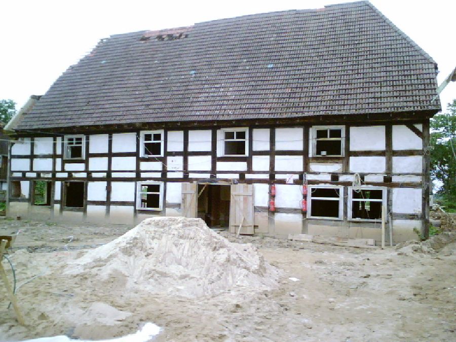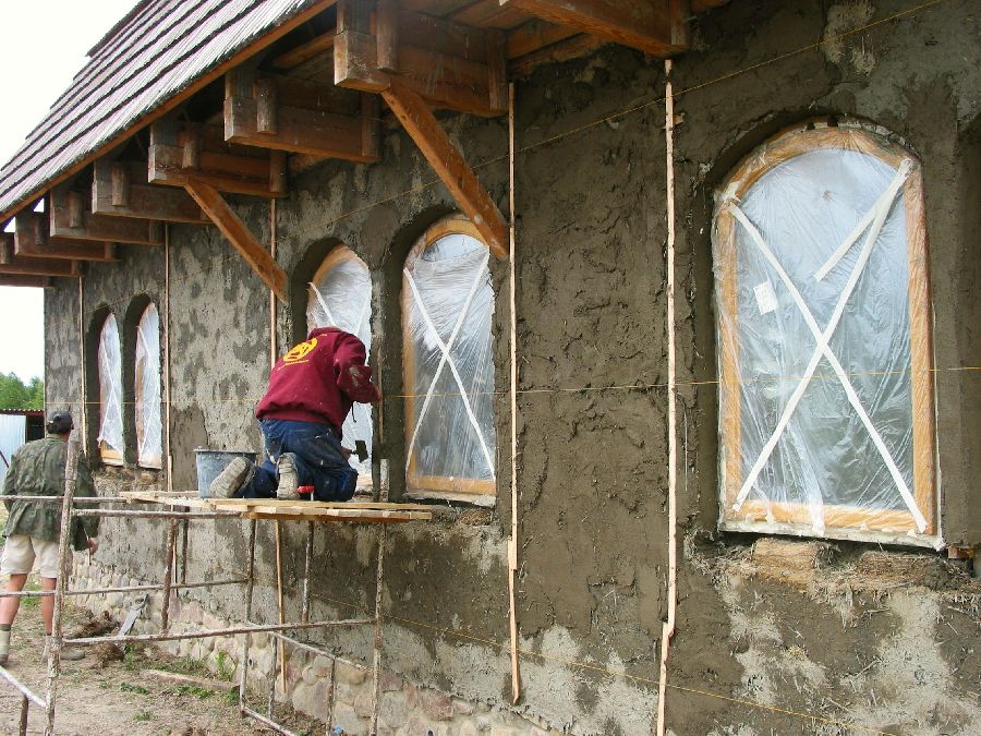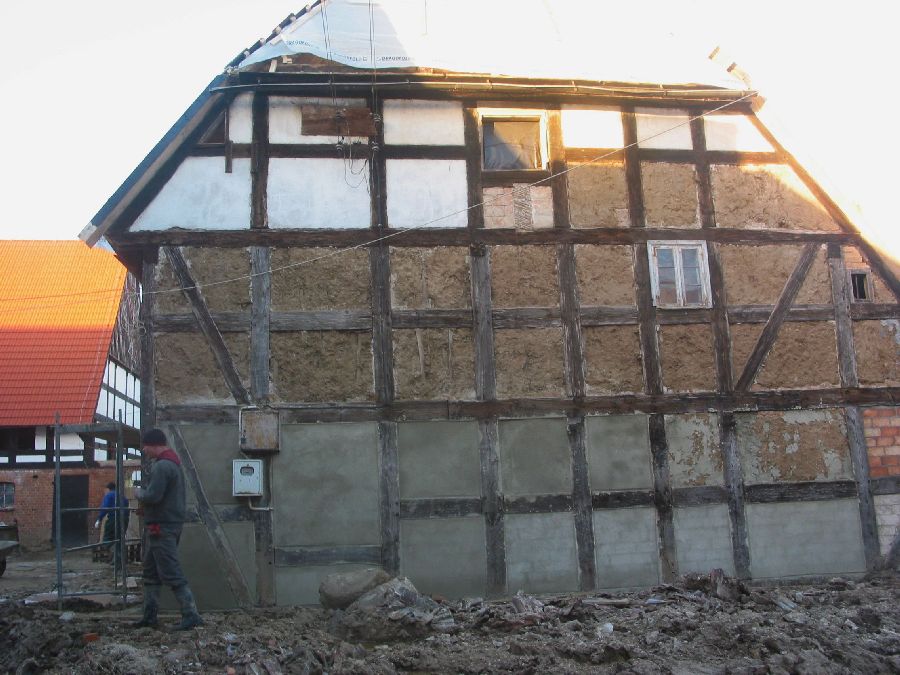 Unser Lehmverputz an einem Gebäude aus Strohbalken, Warmia: