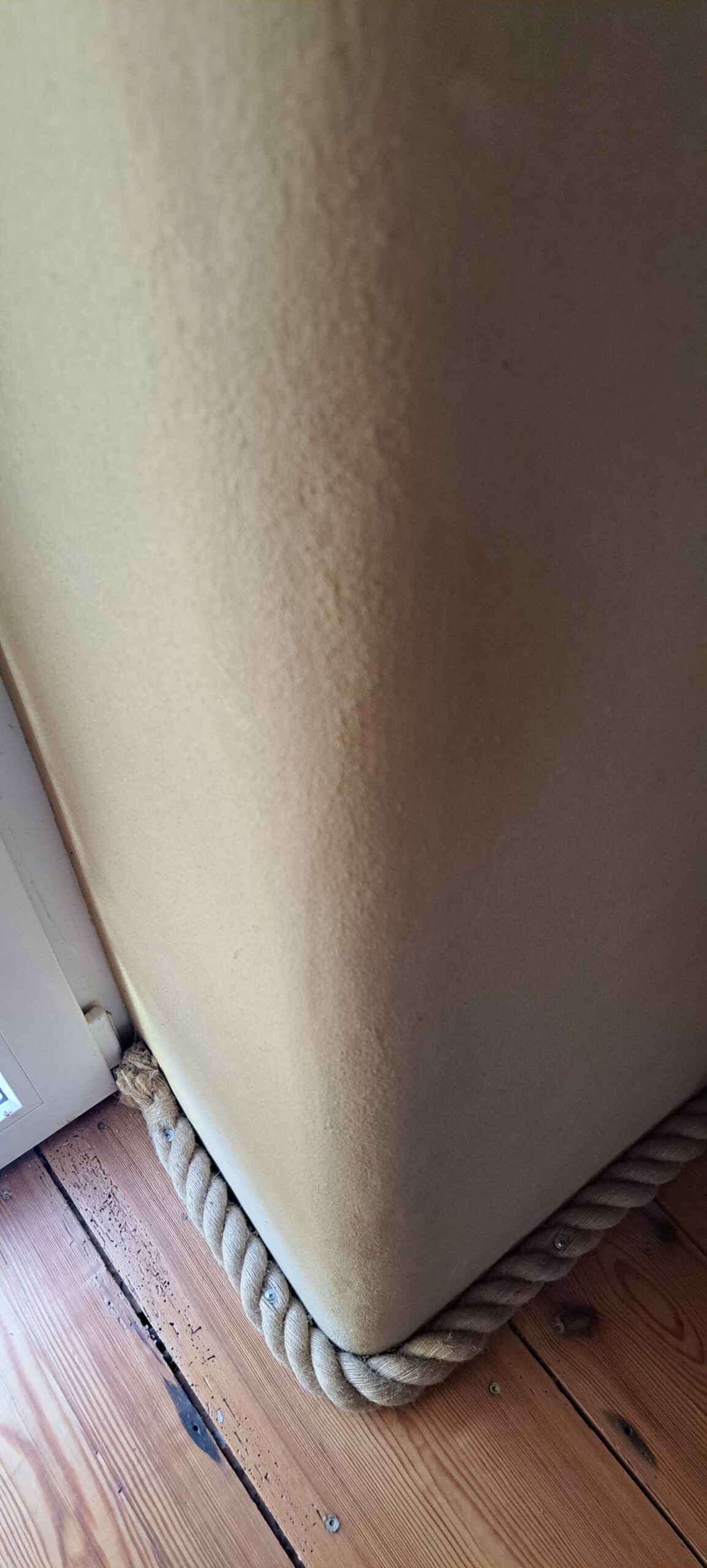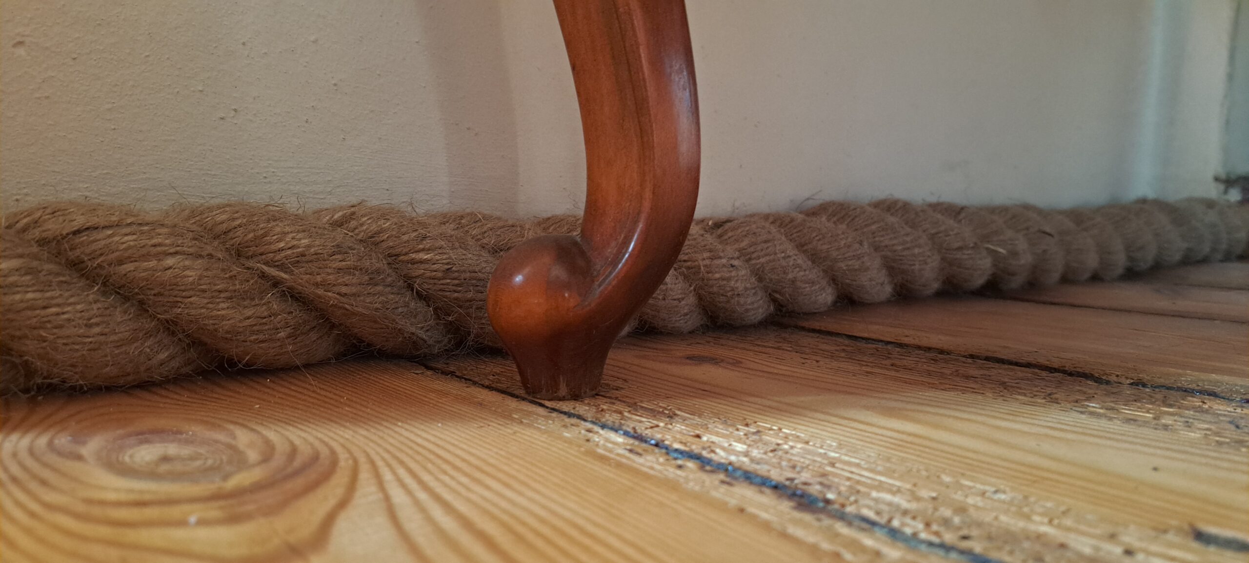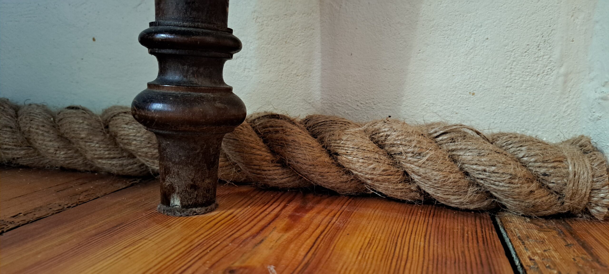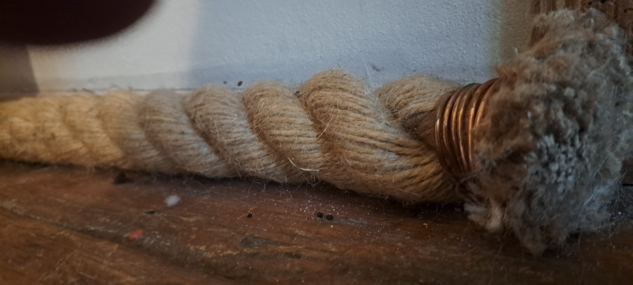 Często mocujemy liny jutowe zamiast listew przypodłogowych. Są szybsze w montażu i łatwiej je odpowiednio umieścić na małych fragmentach ścian. Nie wymagają stosowania specjalnych mocowań, narożników lub drogich zakończeń. Łączenie dwóch kawałków liny jutowej można łatwo zamaskować w rogach ścian lub np. za meblami.
