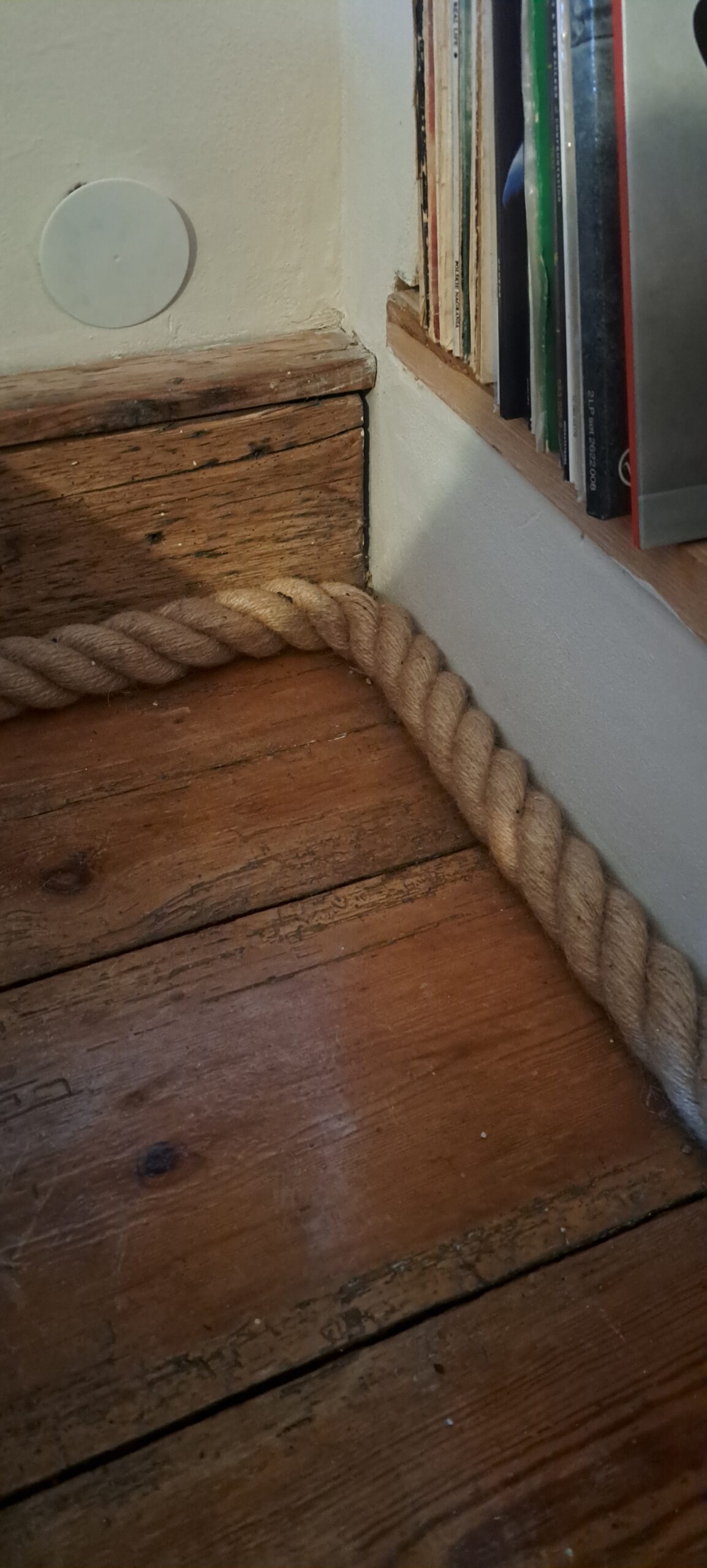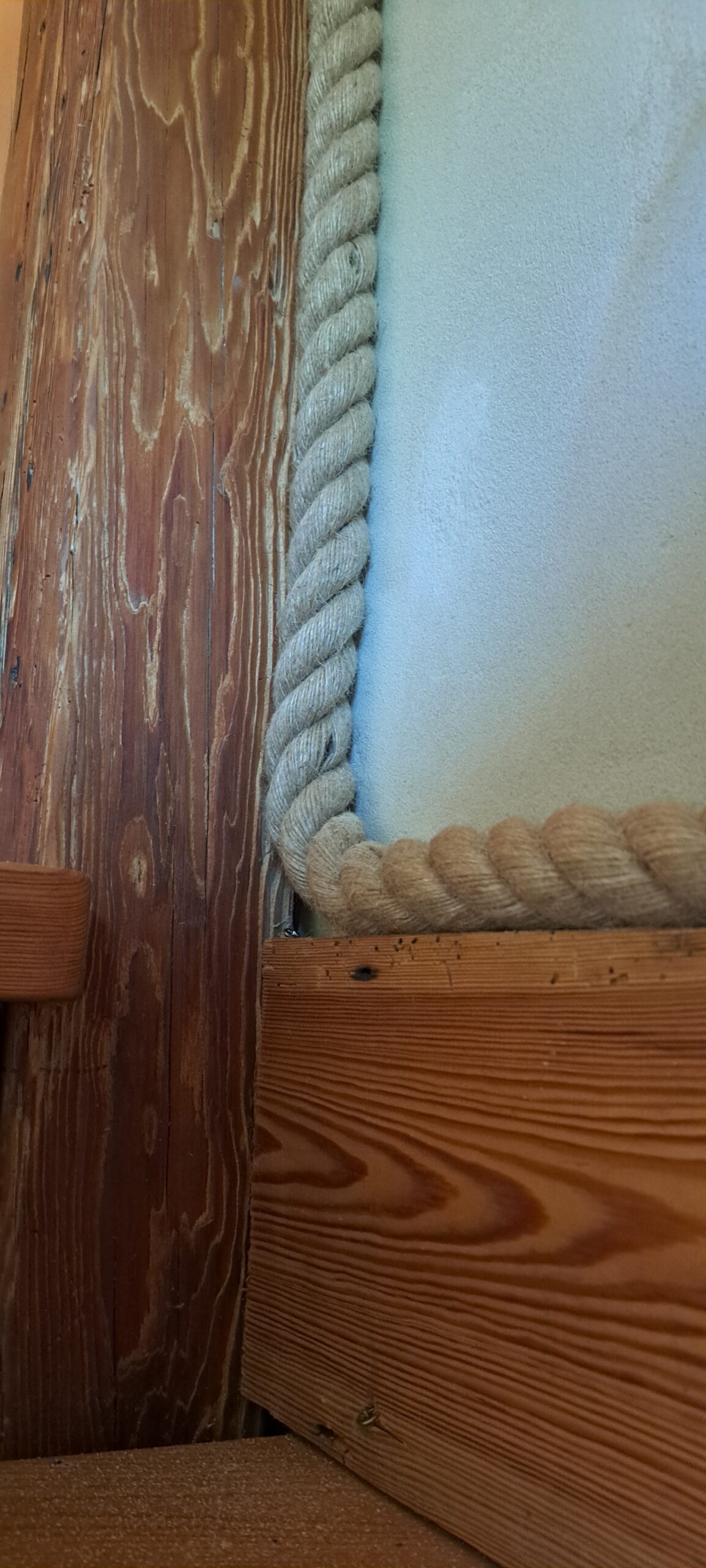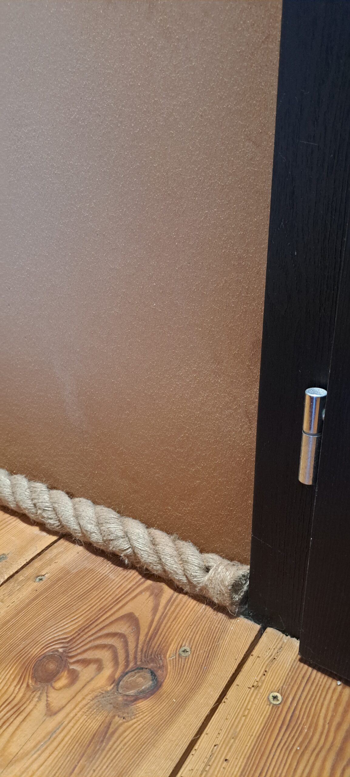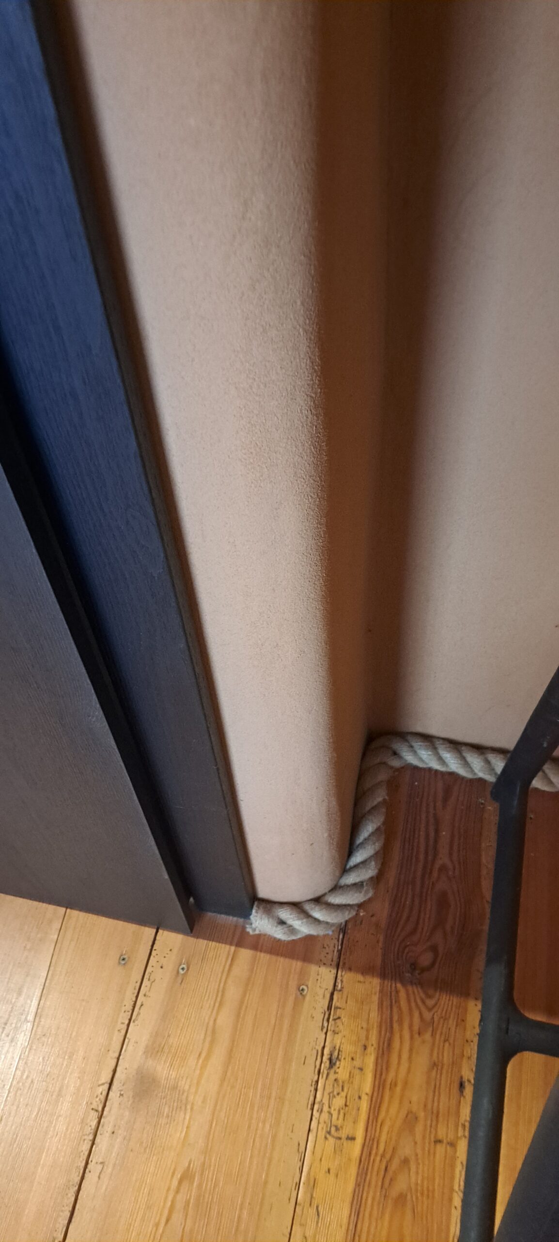 Często mocujemy liny jutowe zamiast listew przypodłogowych. Są szybsze w montażu i łatwiej je odpowiednio umieścić na małych fragmentach ścian. Nie wymagają stosowania specjalnych mocowań, narożników lub drogich zakończeń. Łączenie dwóch kawałków liny jutowej można łatwo zamaskować w rogach ścian lub np. za meblami.