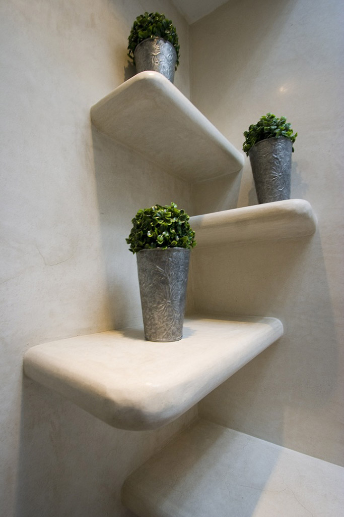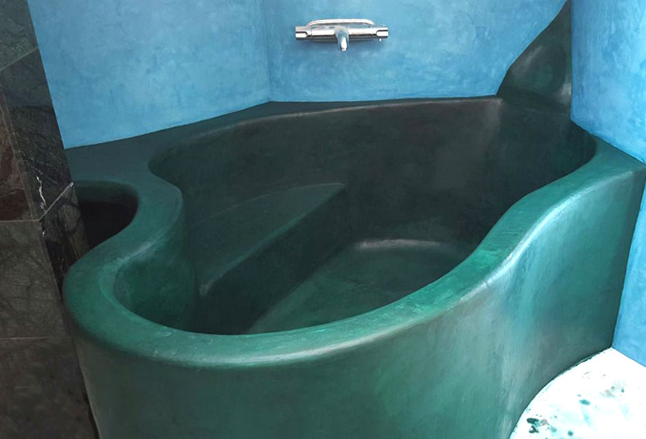Tynk tadelakt może być nakładany na ściany, podłogi i sufity wszędzie tam, gdzie występuje większa wilgotność. Są to głównie łazienki. Możesz zdecydować się na marokański tadelakt na ścianach kabiny prysznicowej, nad wanną lub umywalką albo w całym pomieszczeniu.